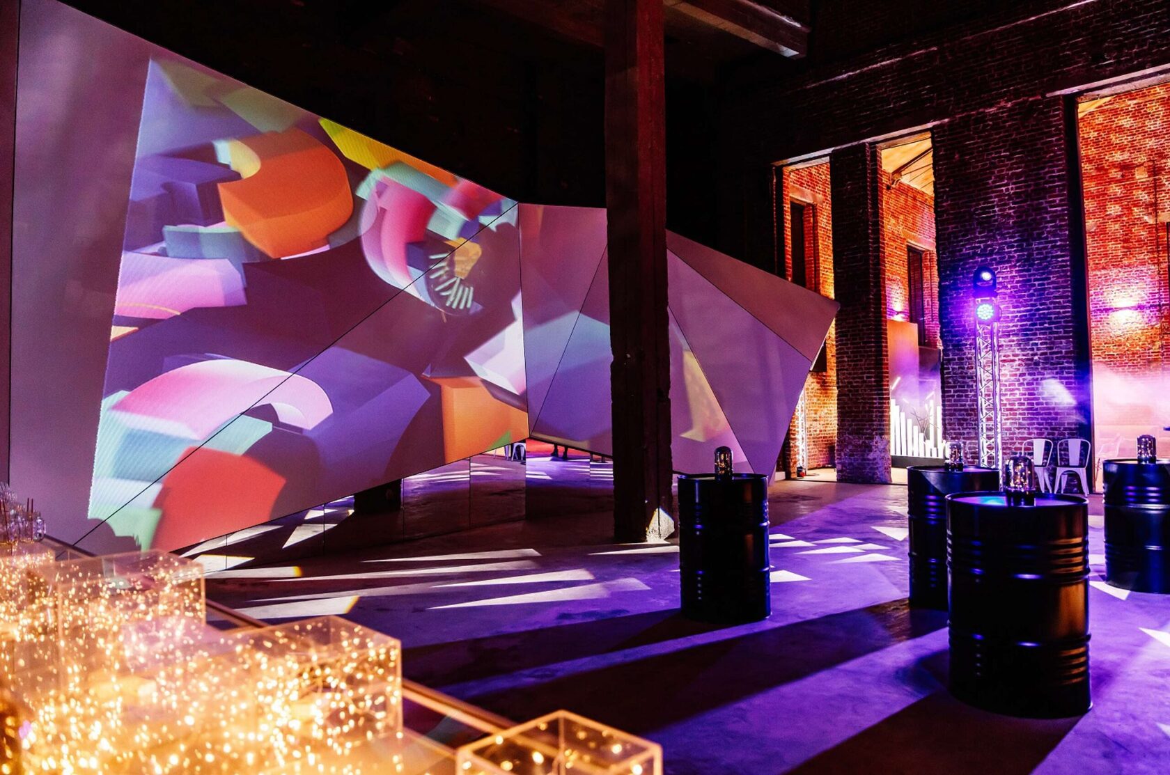 АРТ-площадка для масштабных корпоративных мероприятий на Дубровке. Для 2000 гостей. Необычные дизайнерские объекты